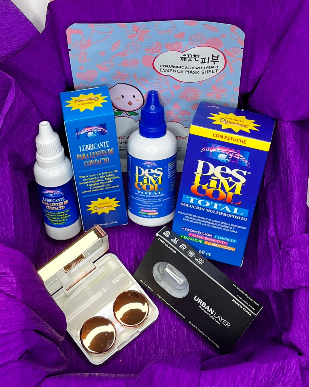 Box premium de lentes de contacto cosmeticos con todo lo que necesitas para un comodo y adecuado uso. De la marca premium Urban Layer con la calidad que la caracteriza.