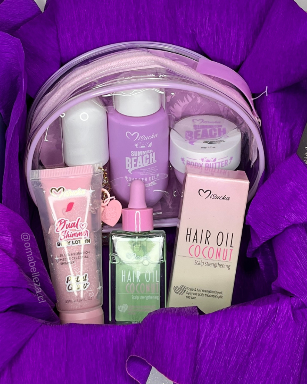 -Set de estuche con gel de ducha, body butter y mist corporal aroma suave y dulce. Misucka