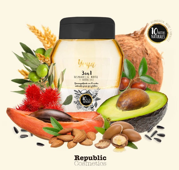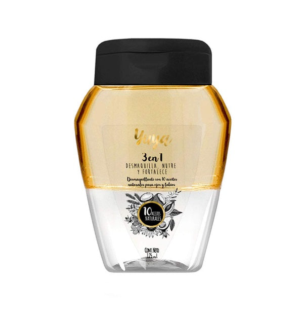 Desmaquillante 3 en 1 con 10 aceites naturales, ayuda a remover máscara de pestañas a prueba de agua, maquillaje para cejas y labiales de larga duración sin irritar tu piel.